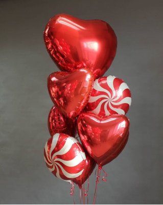 Один фонтан состоит из красного сердца-гиганта (60см), 2 кругов-леденцов, 6 красных сердец, на сердце возможна надпись