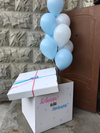 Коробка с любым дизайном для гендерной вечеринки, шары внутри коробки гамма любая(розовые с белыми или голубые с белыми)