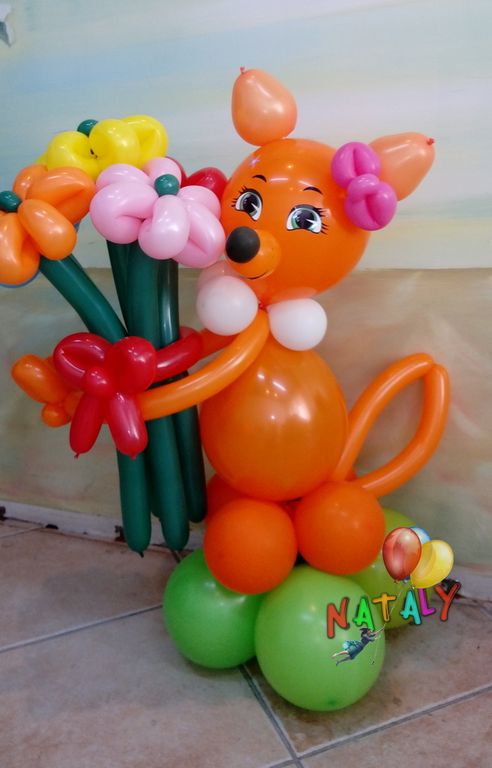 Лисичка из воздушных шаров - рекомендована в качестве подарка как ребенку так и взрослому. Подарок на любой случай. Выполнен из профессиональных шаров высокого качества. Высота 80см.