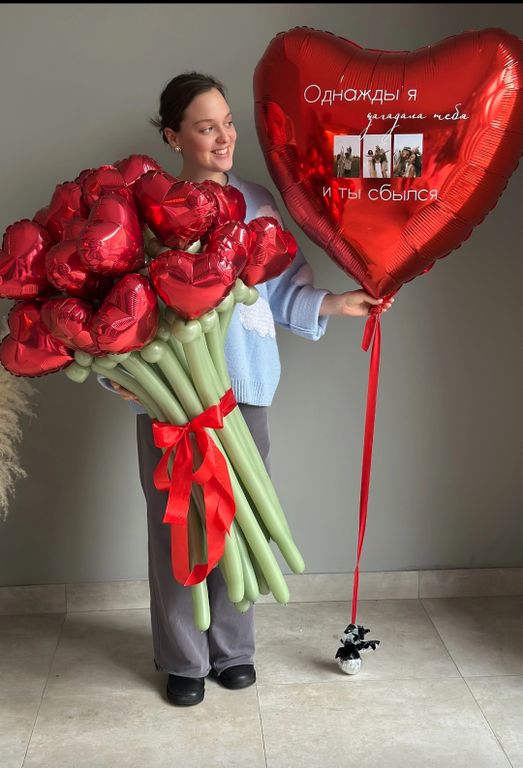 Оригинальный подарок букет из сердец 15 штук и огромное сердце с фото - необыкновенный сюрприз для Вашей второй половинки!
