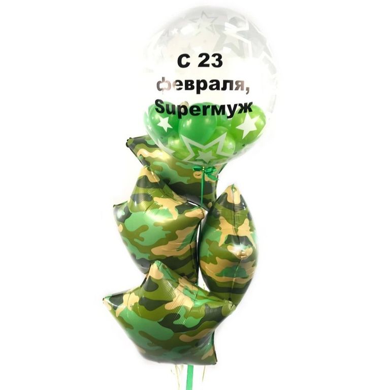 Сет из шаров "С праздником SUPERМУЖ" 3800 руб. Купить в 1 клик В корзину Состав: 5 камуфляжных звезд, шар бабл с надписью Состав: 5 камуфляжных звезд, шар бабл с надписью Комментарии 0 Комментарии 0 Нет комментариев Добавить комментарий С этим товаром покупаютакцияВ корзинуГелиевые шары "Камуфляж"170 ₽ В корзинуВ корзинуКруглая фотозона " 23 февраля"19 000 ₽ 19 500 ₽В корзинуВ корзинуФотозона "23 февраля", оформление офиса8 500 ₽ В корзину