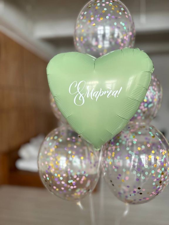 В композицию входит: сердце 56 см, шары с конфетти 5 шт