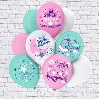 Красивый набор латексных шаров на день рождения. Размер шариков 30 см, наполнены гелием и обработаны специальным составом для долгого полета. Продаются от 5 шт, выбор цвета не предоставляется.