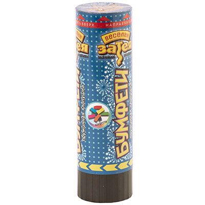 Устройство, аналог пневматической или пиротехнической хлопушки, абсолютно безопасное (работает от пружинки), предназначено для испол ьзования в помещении и на улице, дальность выстрела 2-3 м. Наполнитель: разноцветное прямоугольное конфетти из бумаги.