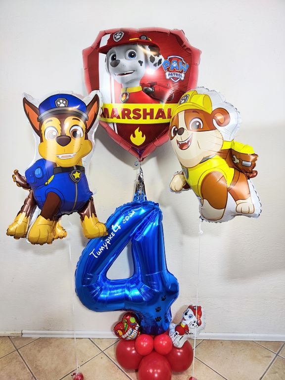 Состав: цифра с воздухом(надпись любая), фольгированные фигуры с гелием: эмблема щенячий патруль, Чейз, Крепыш.