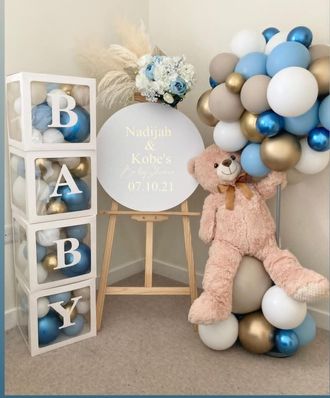 Состав:кубики, мольберт с табличкой, композиция с плюшевым мишкой и шарами.