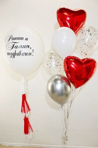 Состав: связка из 9 шаров,шар гигант с надписью индивидуальной.